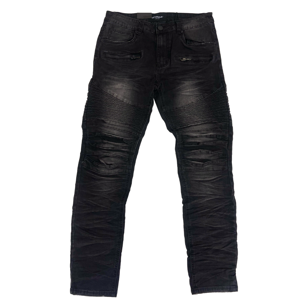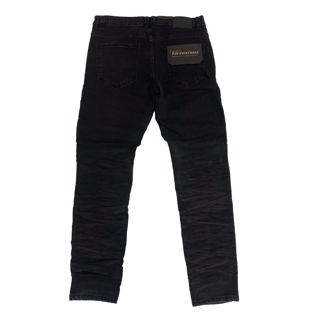 Men's Premium Distressed Black Wash Biker Denim Jeans